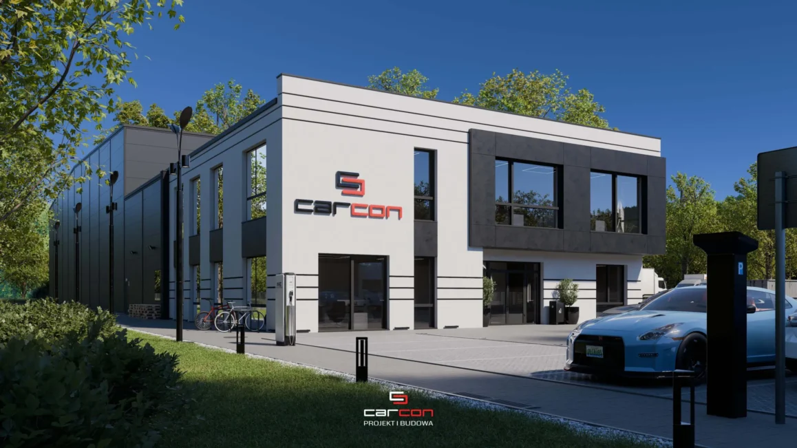 Przedstawione wizualizacje pochodzą z realizacji podobnego budynku wykonanego w systemie „zaprojektuj i wybuduj” przez Carcon.