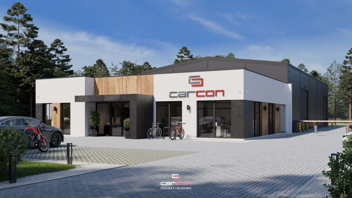 Przedstawione wizualizacje pochodzą z realizacji podobnego budynku wykonanego w systemie „zaprojektuj i wybuduj” przez Carcon.